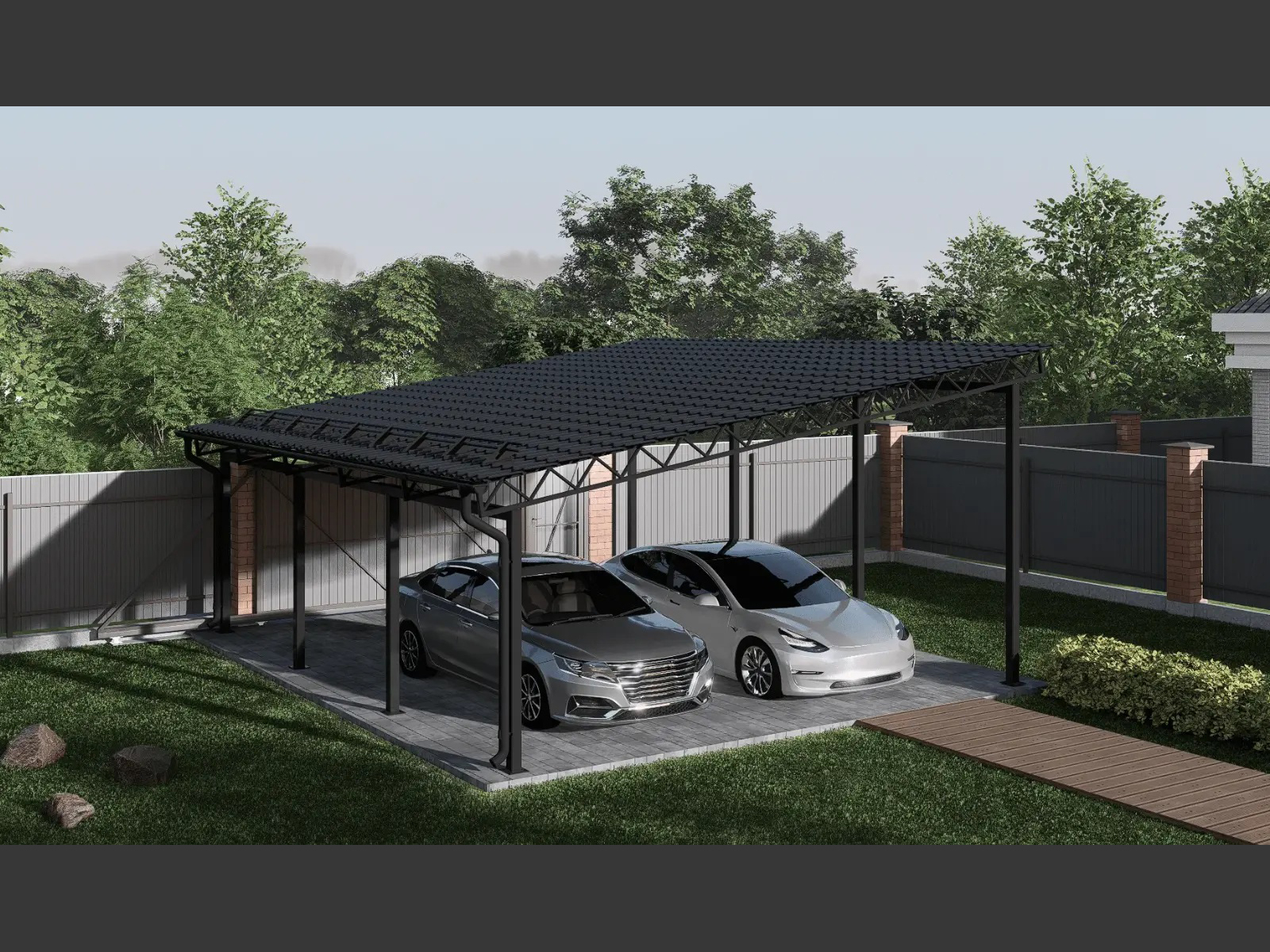 • Kompletny zestaw budowlany, w tym ściany, dach, okna, drzwi i bramy: 61500 PLN brutto;